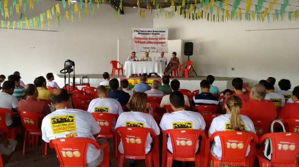 O I Encontro dos Bancários de Itabuna e Região, realizado no último sábado (04), no Clube Kamuá, em Itajuípe, debateu a conjuntura nacional e as condições de trabalho da categoria na atualidade. Além dos bancários da região, estiveram presentes representantes da Federação da Bahia e Sergipe, o deputado federal Davidson Magalhães (PCdoB) e o ex-presidente da ANP (Agência Nacional do Petróleo), Haroldo Lima, que palestrou sobre a situação política e econômica do país.